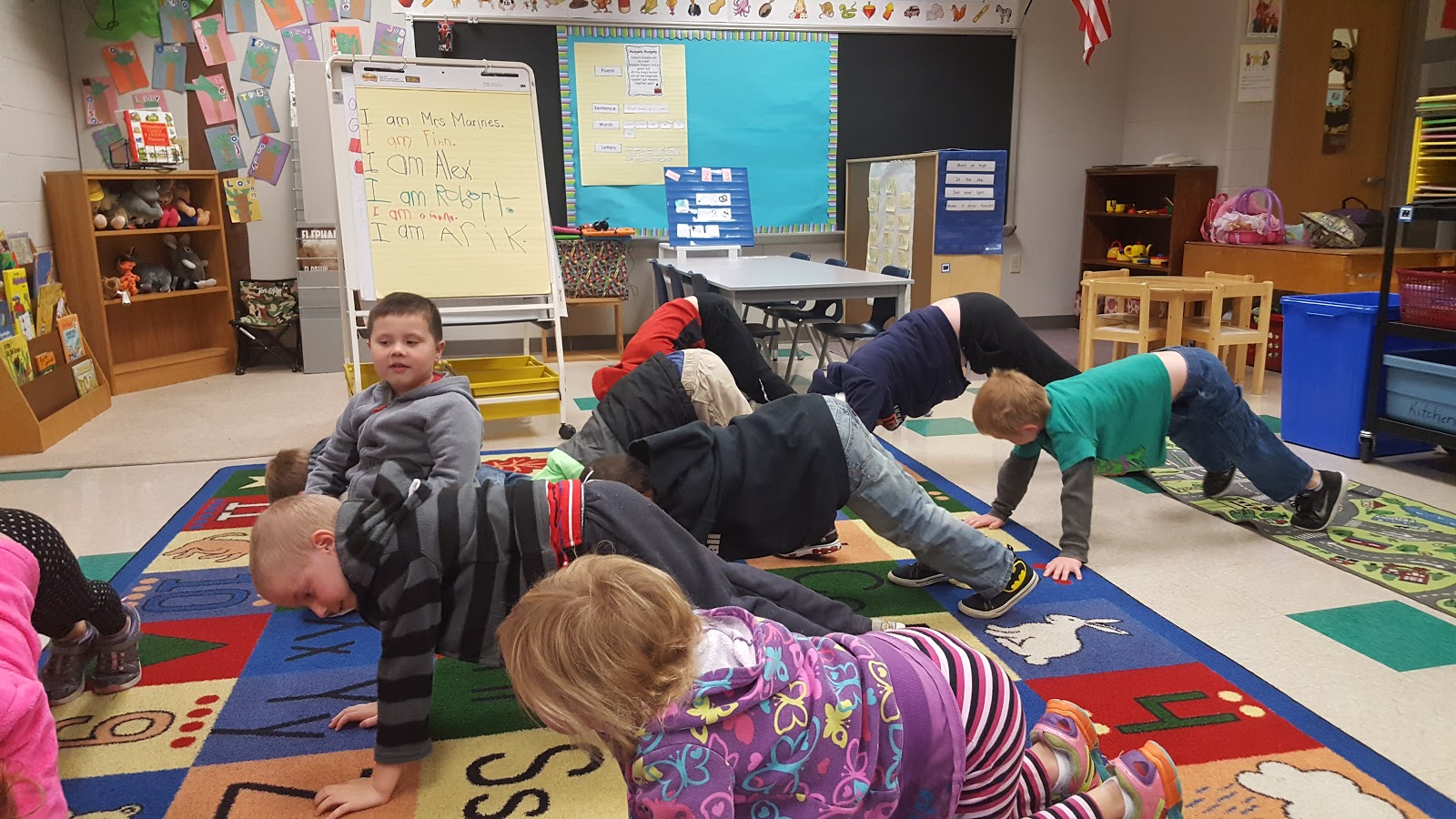 Push up and hold until we count to 20! Try it! Works those muscles!