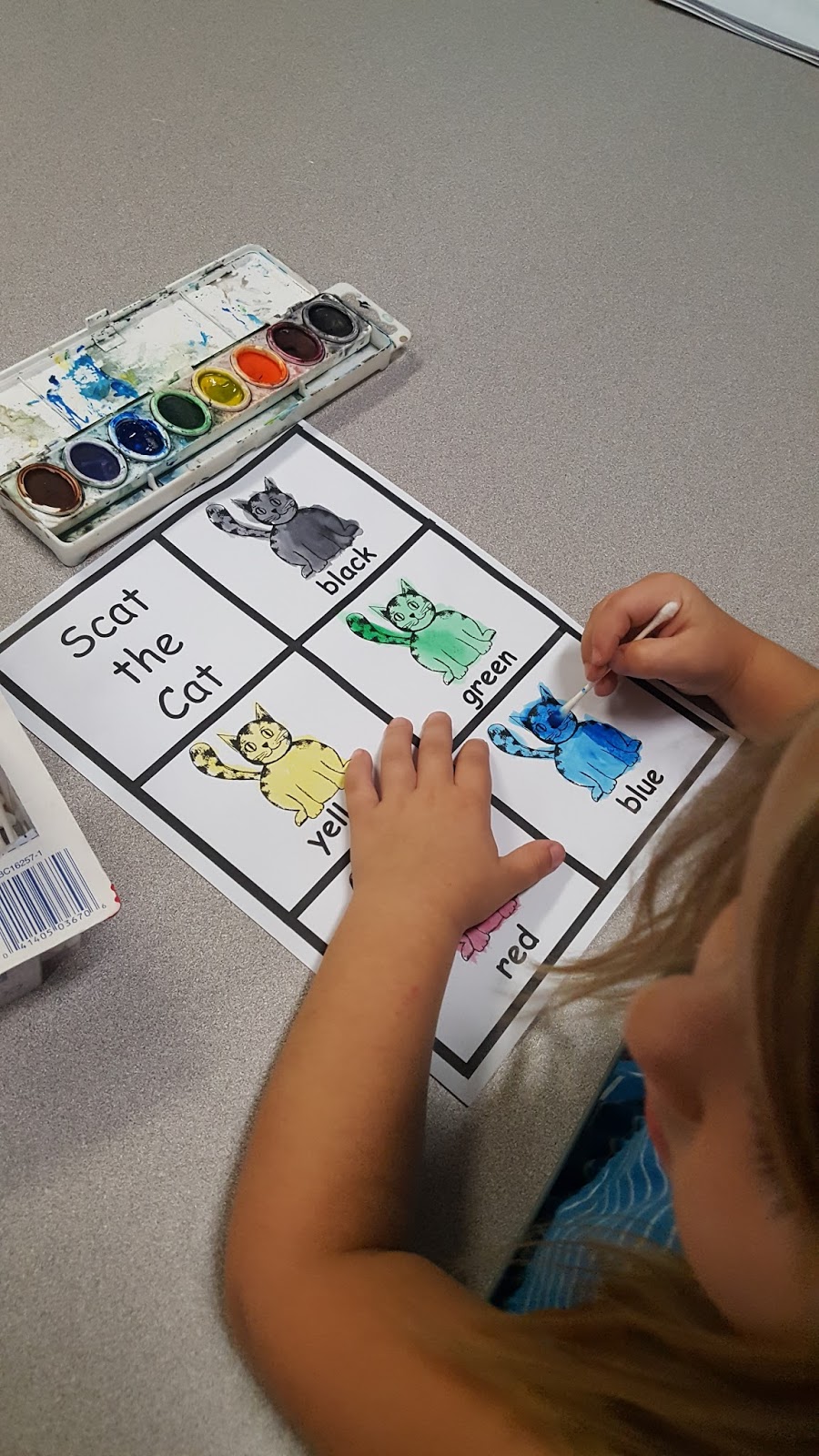 Once again, water colors were used to color the picture! Then we used Chatterpix to make the cats talk which is a perfect way to add some technology skills to the day. Then we shared with parents on Seesaw Online Learning Journal! Check out the cool rhyme!