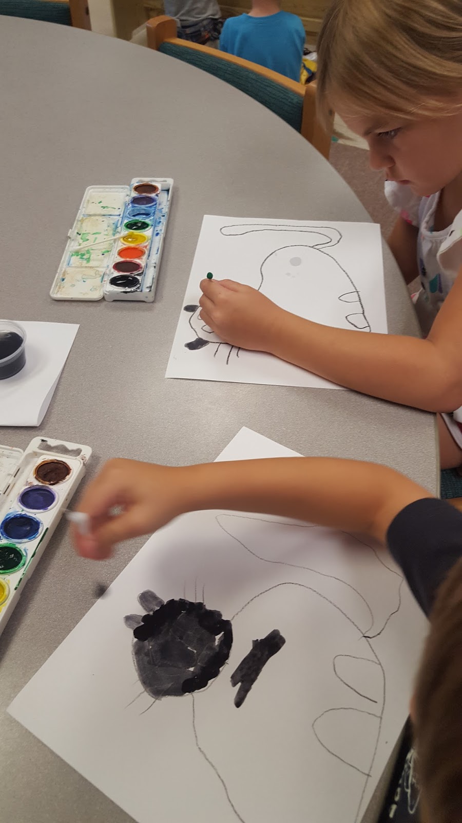 Then we used water colors to create the pictures to match the colors from the story! This works so much better than coloring at this time of the year! The colors blend more easily, and it works the fine muscles in the hand because we used q-tips instead of paint brushes!