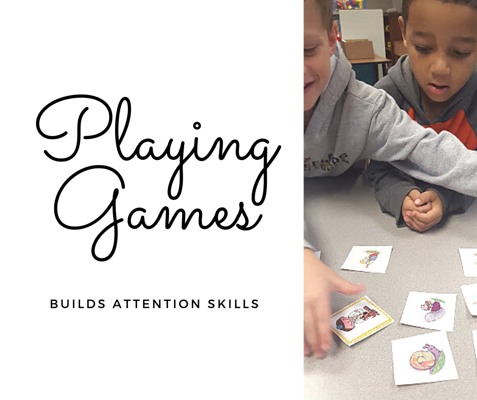 Attention is being able to focus and block out the distraction around them. All students, especially those with ADHD have a hard time blocking out other things that they are hearing. While playing games they have to pay attention to the game and block out what is going on around them.