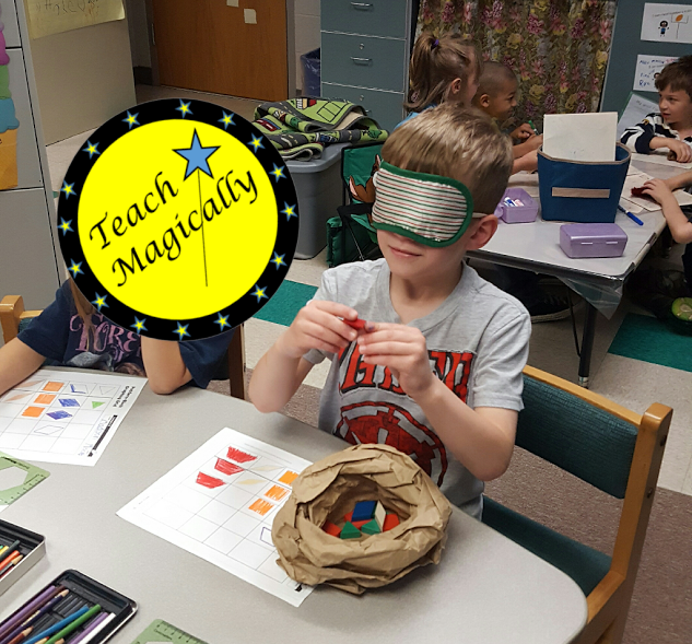 Pulling pattern blocks from a bag and graphing to see which was pulled is a fun way to keep kiddos learning.