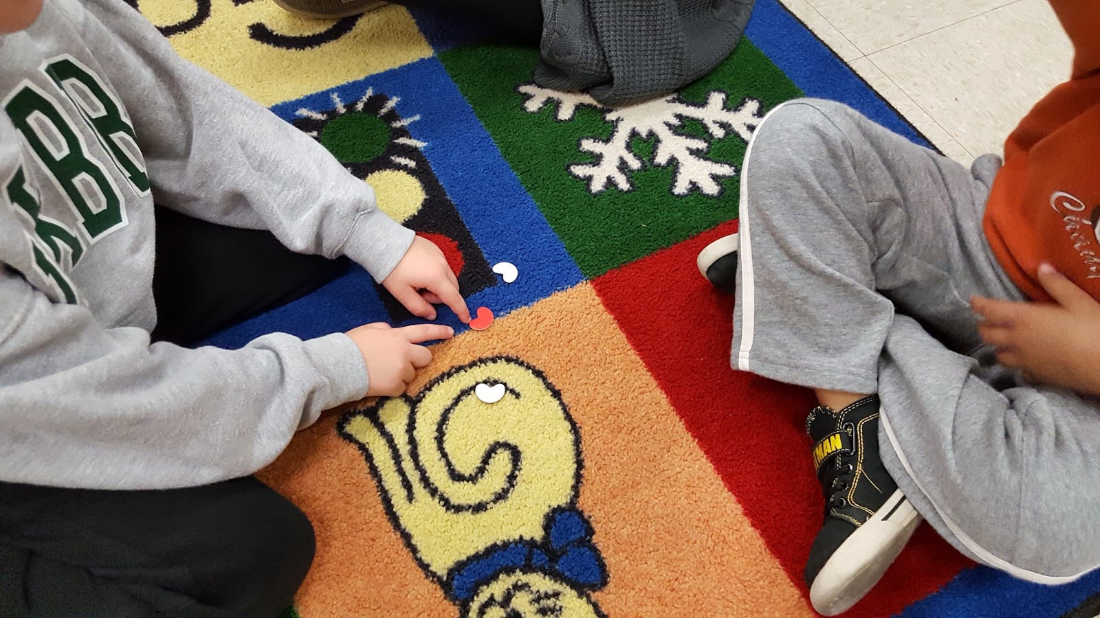 Working on number sense using double sided beans.