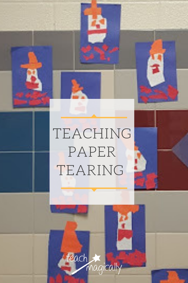 Students can “tear in the air” or “use the table as their friend” (holding the paper down with one hand while tearing with the other). Have students practice to find what works best…plus they will have fun going back and forth as they practice.