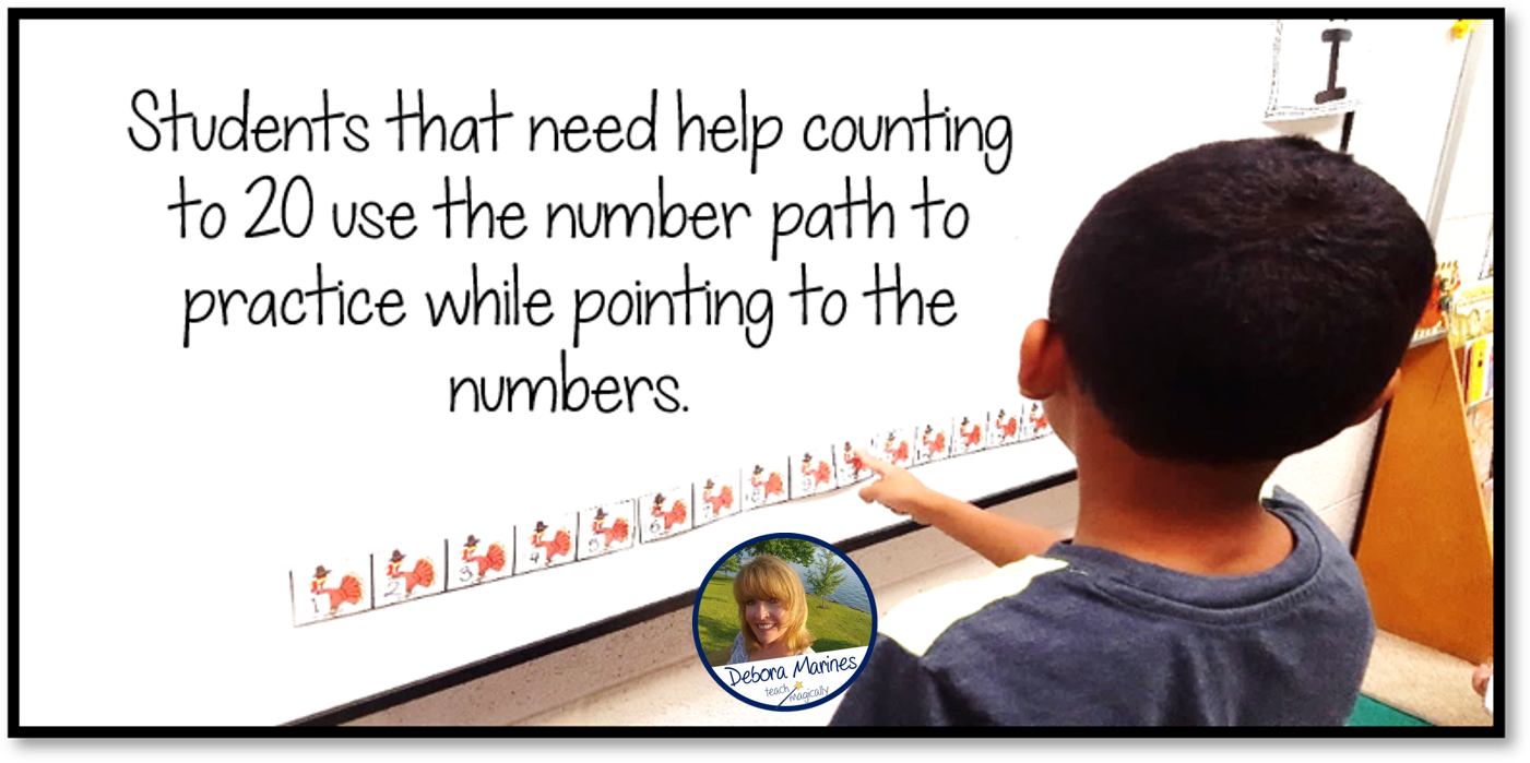 When students practice counting, they’re learning one-to-one correspondence, or how to match each object they’re counting to each number they’re saying. This can be done so easily with a number path. To help them practice this concept, give students a number path, to take apart and put back together.
