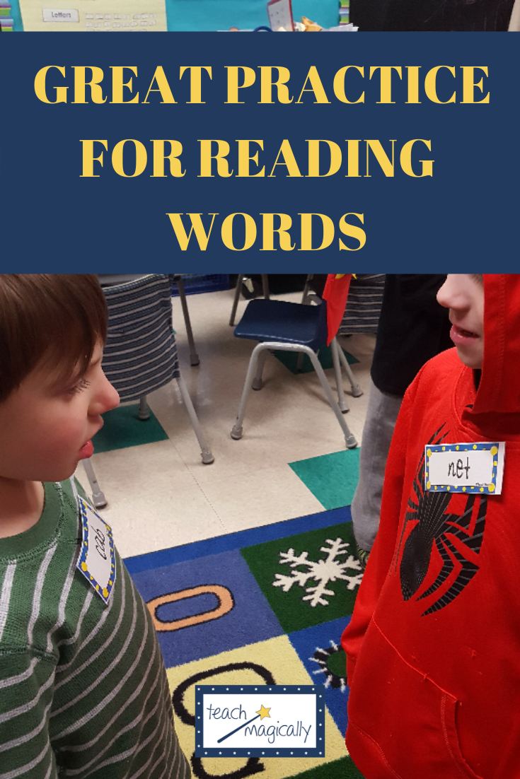 I have the student pick a card to stretch, blend, then read (some old timers call this sounding it out)! The student then has to tape the card on his/her shirt. Click here for Cvc Games that will help develop fluency.