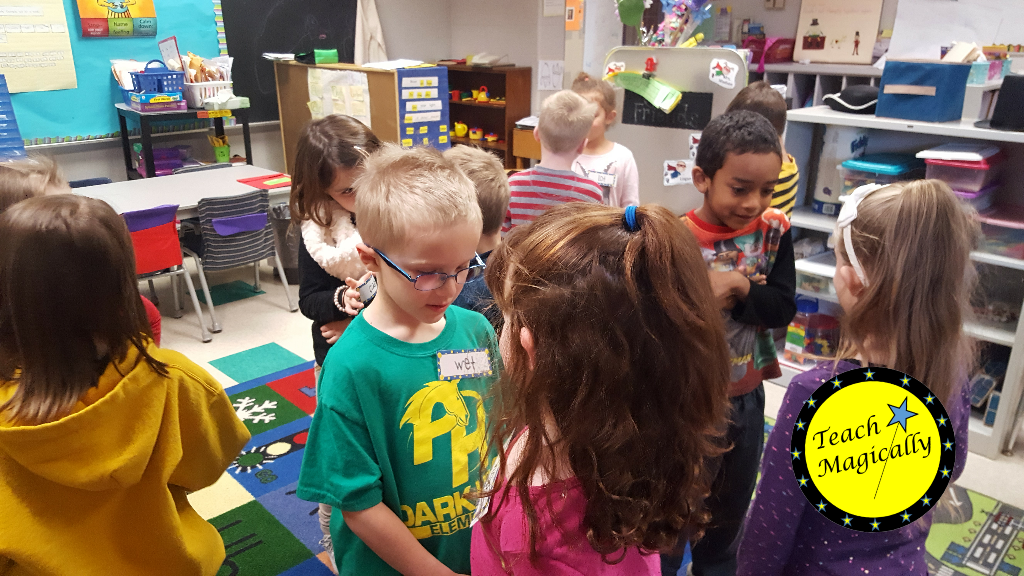 Then each student then walks around the room to find a partner. Each partner must do some type of class greeting; we love to shake hands!! We will change the greeting to make it fun each week!
